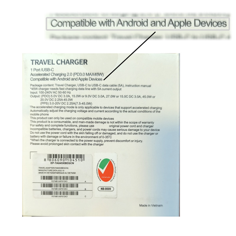 شارژر دیواری 45 وات مدل XBEG-TA845W اصلی