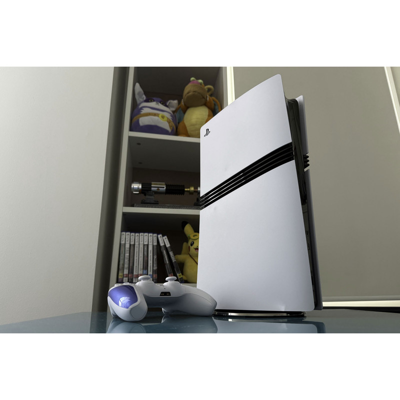 پلیاستیشن 5 پرو (PlayStation 5 Pro) نسخهای قدرتمندتر از کنسول نسل نهمی سونی است که برای گیمرهای حرفهای و علاقهمندان به بالاترین سطح کیفیت گرافیکی طراحی شده است. این مدل با ارتقاء سختافزاری قابل توجه، تجربهای پیشرفتهتر از نسخه استاندارد ارائه میدهد. پردازنده گرافیکی قویتر با معماری RDNA 3 و توان پردازشی بالاتر، امکان اجرای بازیها با وضوح 4K پایدارتر، فریمریت بالاتر و حتی پشتیبانی از خروجی 8K را فراهم میکند. PS5 Pro همچنین از فناوری پیشرفته رندرینگ مانند Ray Tracing بهره میبرد که موجب نورپردازی و بازتابهای واقعگرایانهتر در بازیها میشود. حافظه داخلی 2 ترابایتی SSD با سرعت بالا، زمان بارگذاری را به حداقل میرساند و فضای کافی برای نصب بازیهای حجیم فراهم میآورد. طراحی این مدل کمی بزرگتر و خشنتر از نسخه اسلیم است و با تهویه بهبود یافته، سیستم خنککننده قدرتمندتری دارد. پلیاستیشن 5 پرو گزینهای ایدهآل برای کاربرانی است که به گرافیک بالا، روانی بازی و آمادهبودن برای آینده بازیها اهمیت میدهند. این کنسول نمایانگر اوج تکنولوژی بازی در نسل نهم است.